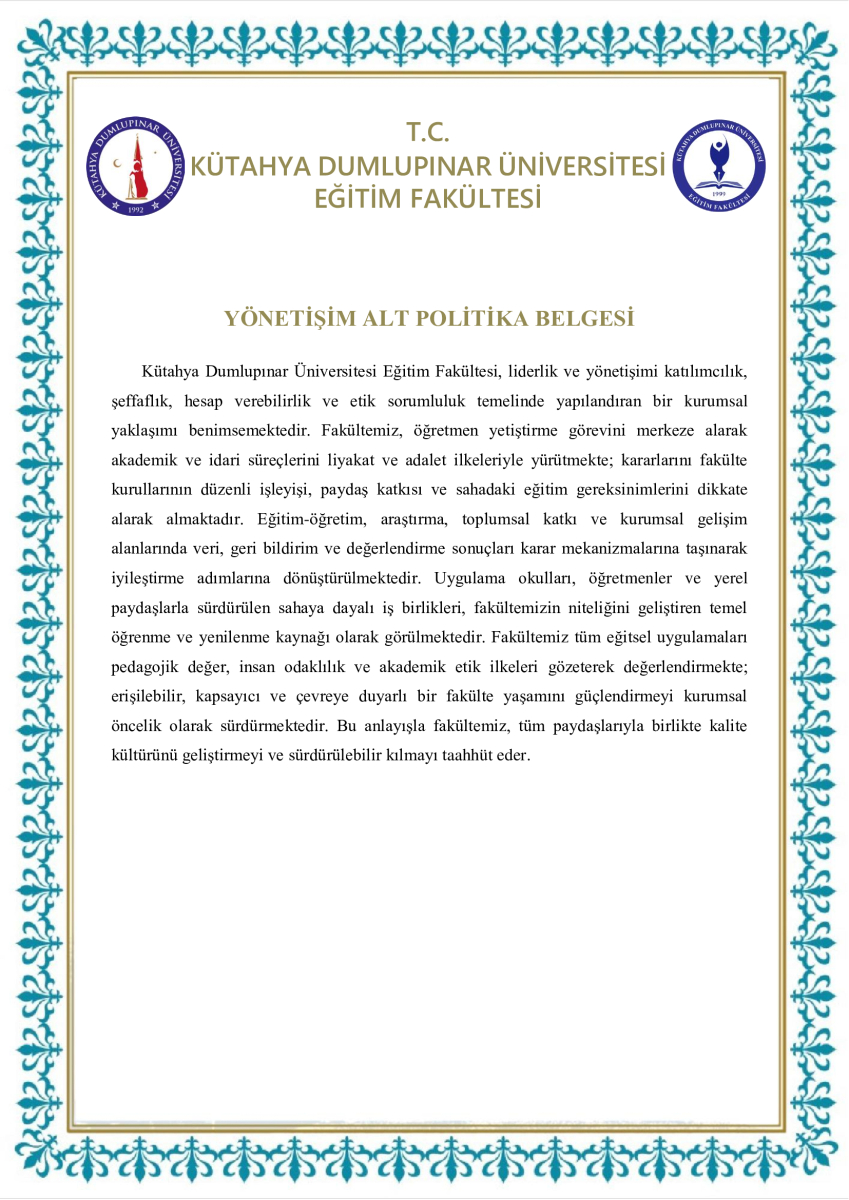 - Politikalarımız / Yönetişim Alt Politika Belgesi