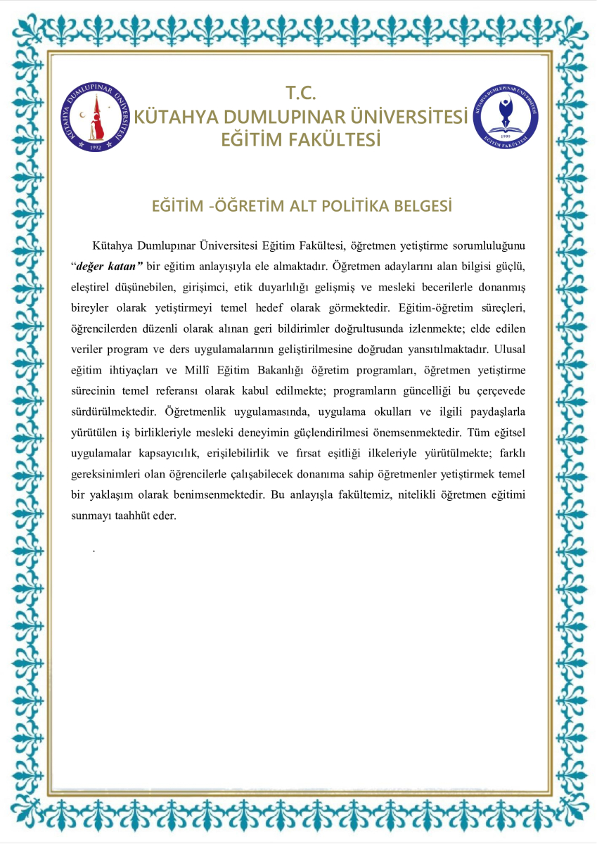 - Politikalarımız / Eğitim-Öğretim Alt Politika Belgesi