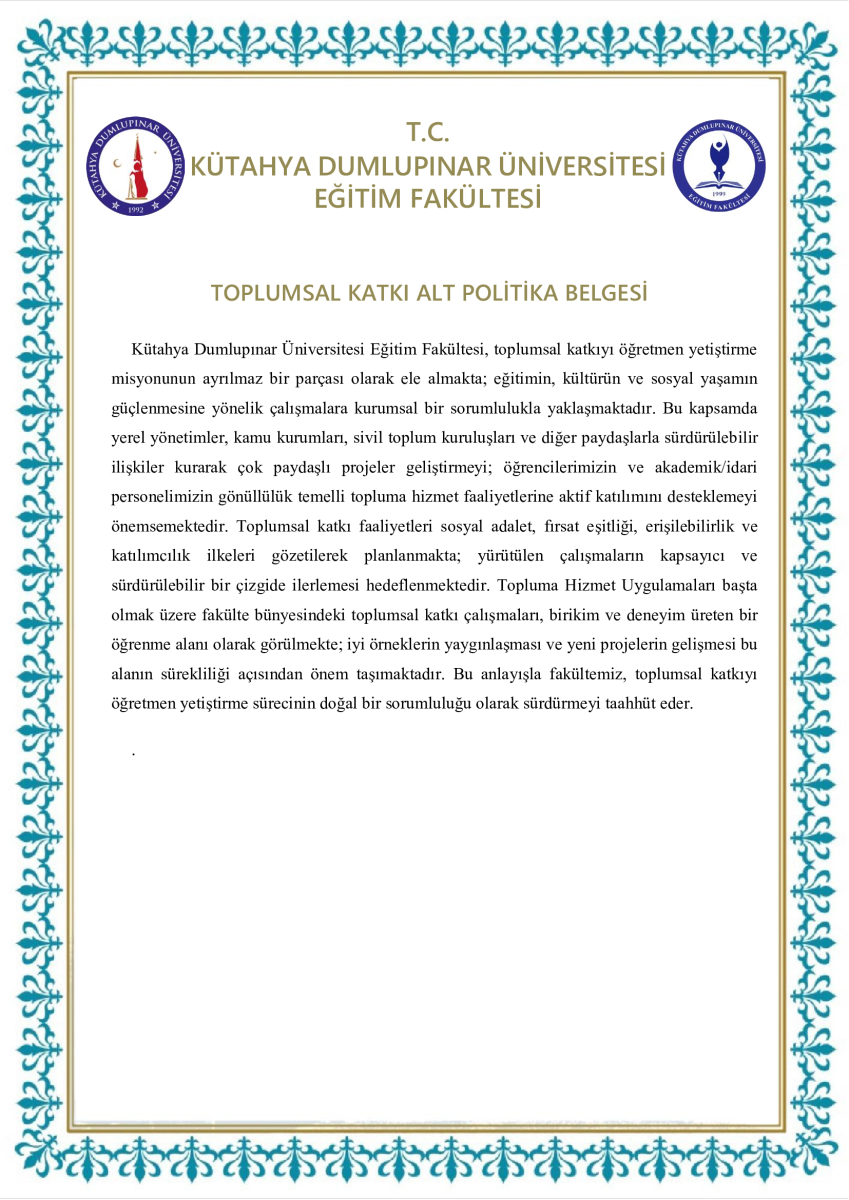 - Politikalarımız / Toplumsal Katkı Alt Politika Belgesi